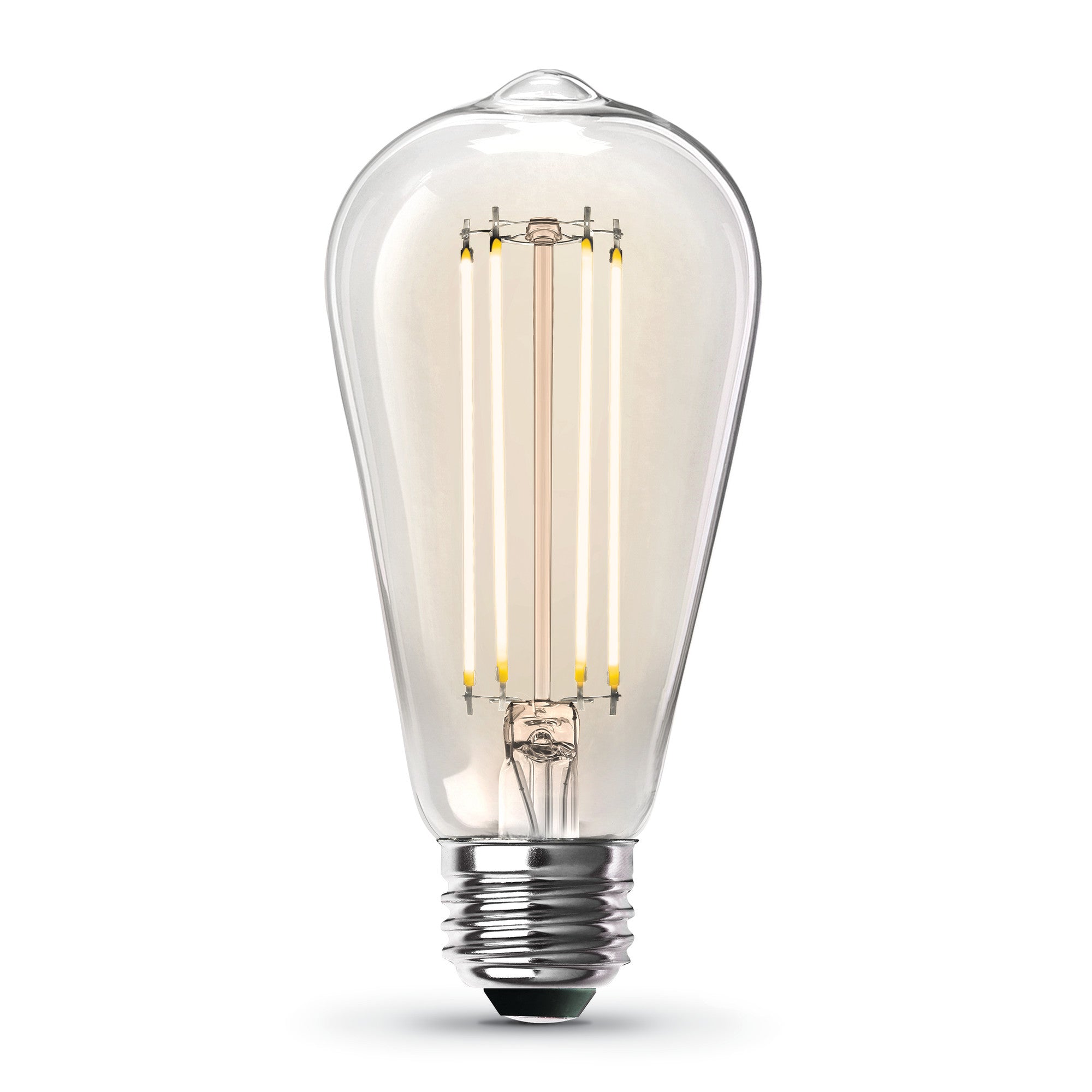 Combine the vintage glass filament lighting look and feel with the advantages of modern LED technology with this stylish light bulb from Feit Electric. Energy efficient LEDs replace a 100-watt incandescent, producing a 2700K Soft White glow that gives the home a cozy feel. A stylish ST19 shape with vertical filament strips wrapped in clear glass housing is ideal for decorative lighting fixtures and will enhance the décor of any room.