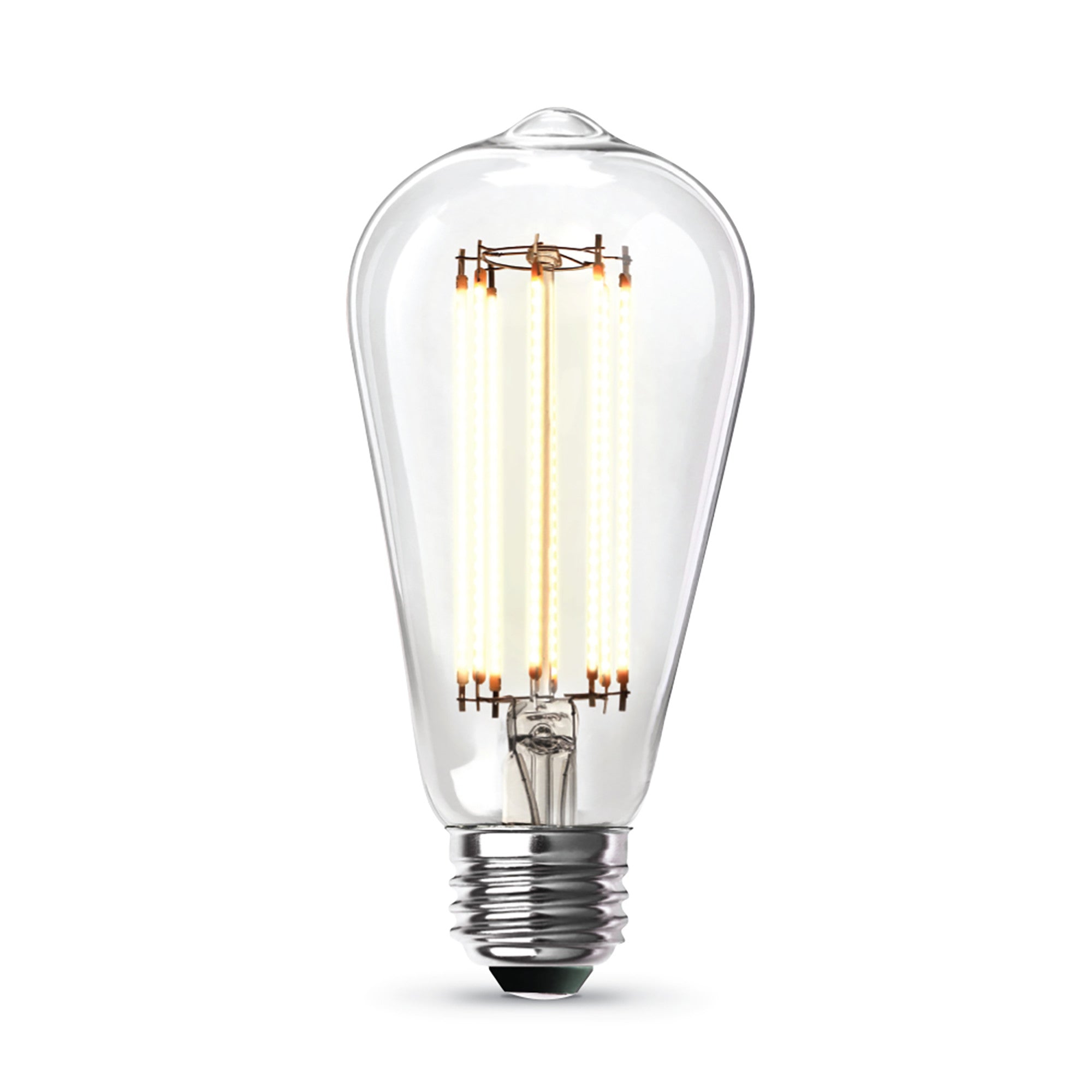 Combine classic style, modern reliability, and energy savings with Feit Electric ST19 LED 60-Watt Equivalent Bright White (3000K) cage filament light. Our vintage filament bulbs are made with LED exposed filament and wrapped in a clear housing to deliver an elegant antique look and feel. We integrate innovative LED technology with a traditional straight filament, providing a natural lighting experience for those that want the benefits of LEDs and the look of vintage lighting. Filament LEDs will last for years and use just a fraction of the energy of an incandescent.