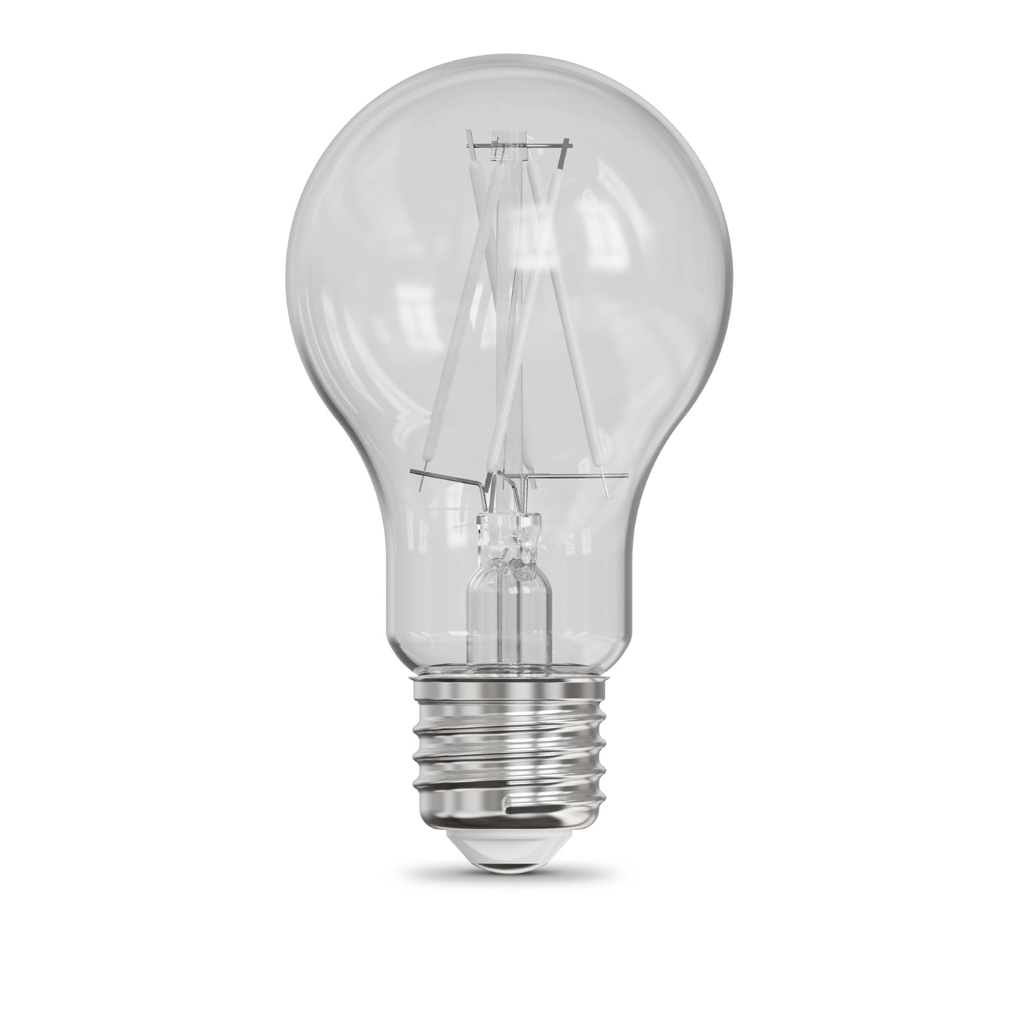 A new look for decorative lighting, these clear glass LED bulbs with exposed white filament enhance any room. Their discreet, white-colored core complements any décor style, unlike yellow filaments that tend to stand out and distract. Timeless clear glass and traditional shape give a nod to classic design. Select from household A19 bulbs, chandelier bulbs, globe shapes, and more.