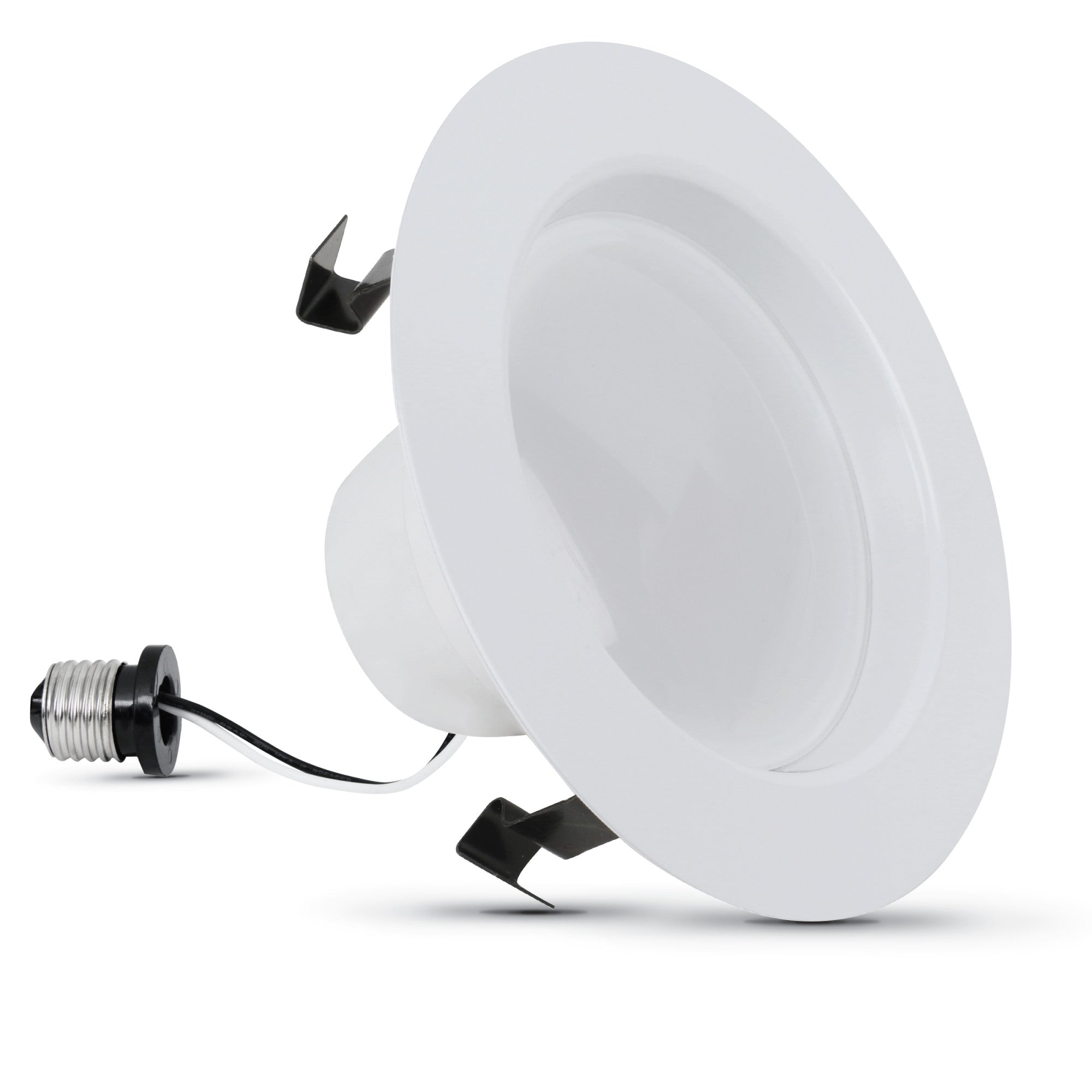 Upgrade your old recessed downlights to advanced LED energy-saving technology with dimmable recessed downlights from Feit Electric. Ideal for larger spaces or high ceilings, these super bright 5000K Daylight kits fit most 4" housings and produce up to 1000 lumens using only 11 watts - up to 85% less energy than an equivalent 75-watt incandescent light. Enhance 90+ CRI LED light makes colors vibrant and skin tones look more natural, all while saving energy and lasting for a decade or more. Each Energy Star-qualified kit comes with a standard base adapter and a pre-mounted trim.