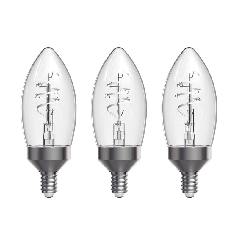 A new look for decorative lighting, these clear glass LED bulbs with exposed white filament enhance any room. Their discreet, white-colored core complements any décor style, unlike yellow filaments that tend to stand out and distract. Timeless clear glass and traditional shape give a nod to classic design. Select from household A19 bulbs, chandelier bulbs, globe shapes, and more