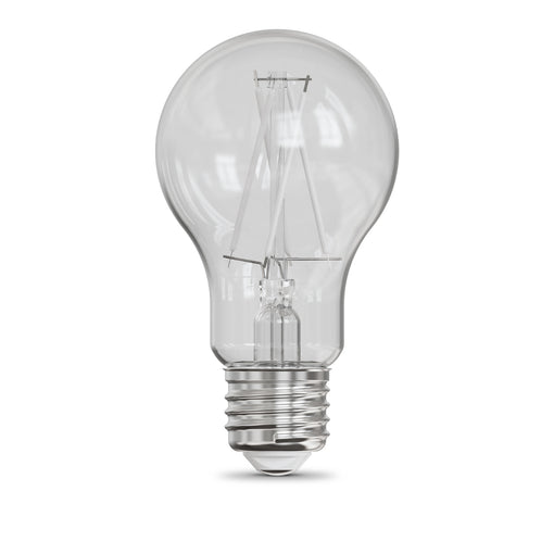 Upgrade your lighting to elegant White Filament LED Light Bulbs from Feit Electric for a fresh, modern take on vintage bulbs. These first-of-their-kind white filament bulbs take a traditional A-shape bulb with exposed filament encased in clear glass and add lower-profile white filaments. Unlike yellow filaments, these blend into any décor, for a timeless look that complements any room. Adjustable White light lets you select from Soft White, Bright White, True White, Cool White, or Daylight on the bulb before installation to match your current lighting or set the perfect color temperature for your space. Customize the mood in your space with smooth dimming when combined with LED-compatible dimmer switches (sold separately). With Enhance 90+ CRI, these higher-quality bulbs make colors appear more vivid and true to life. 8.8-watt LED bulbs emit 800 lumens while using 85% less electricity than equivalent 60-watt incandescent bulbs. Create a stylish, clean feel that instantly livens up the décor of any space.