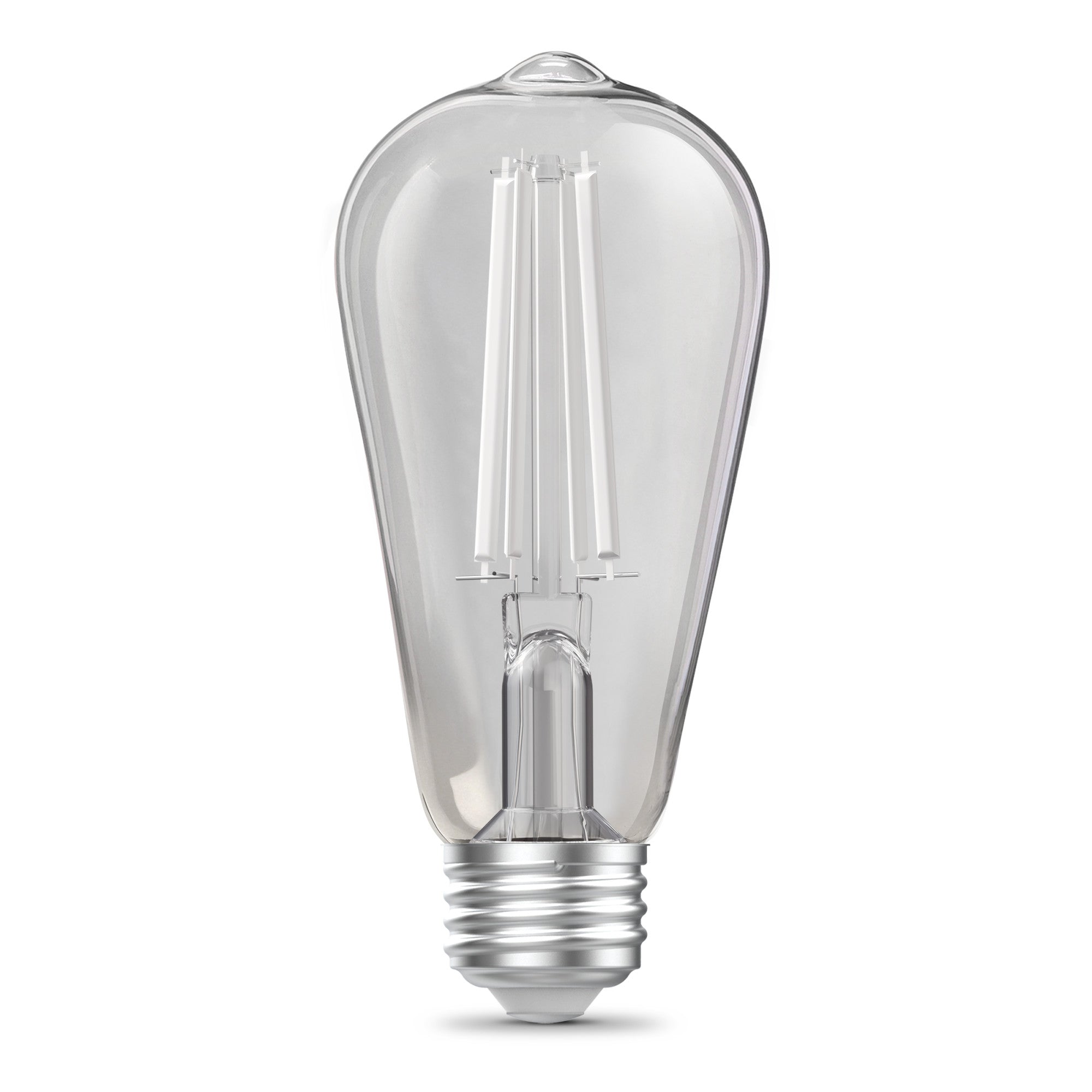Upgrade your lighting to Feit Electric’s elegant White Filament LED Light Bulbs for a fresh take on decorative bulbs. These first-of-their-kind white filament bulbs take a traditional ST19 bulb with exposed filament encased in clear glass and add lower-profile white filaments. Unlike yellow filaments, these blend into your current décor, for a timeless look that complements any room. Their dimmable 2700K Soft White glow is ideal for creating a relaxing and comfortable atmosphere, with no harsh glare. These bulbs can be utilized with any medium E26 base such as wall sconces, pendant lights, and table lamps. The ST1960CL927CAWFIL/2 emits 800 lumens while only using 8.8 watts of electricity, up to 85.3% less energy than equivalent 60-watt incandescent bulbs. A 90+ CRI infuses vibrance into your space, bringing out truer colors and more natural skin tones. Create a stylish feel that instantly enhances any home or commercial space.