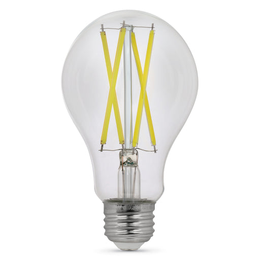 Enjoy classic style combined with modern reliability and energy savings, with the Feit Electric Enhance BPA19100CL927CAFI2RP Filament two-pack of LED light bulbs. These beautiful high-performance bulbs combine innovative LED technology with filament strips, saving energy while providing the look of a traditional bulb. Each bulb emits 1500 lumens of 2700K Soft White light, ideal for inviting warm light in living rooms and bedrooms. They use only 15 watts of electricity - 85% less than equivalent 100-watt incandescent bulbs - and last up to 15,000 hours/13.7 years. A high 90+ CRI so colors appear more vivid and natural. These versatile bulbs are fully dimmable and suitable for a variety of general-purpose lighting applications. Upgrade to longer-lasting LED bulbs from Feit Electric.