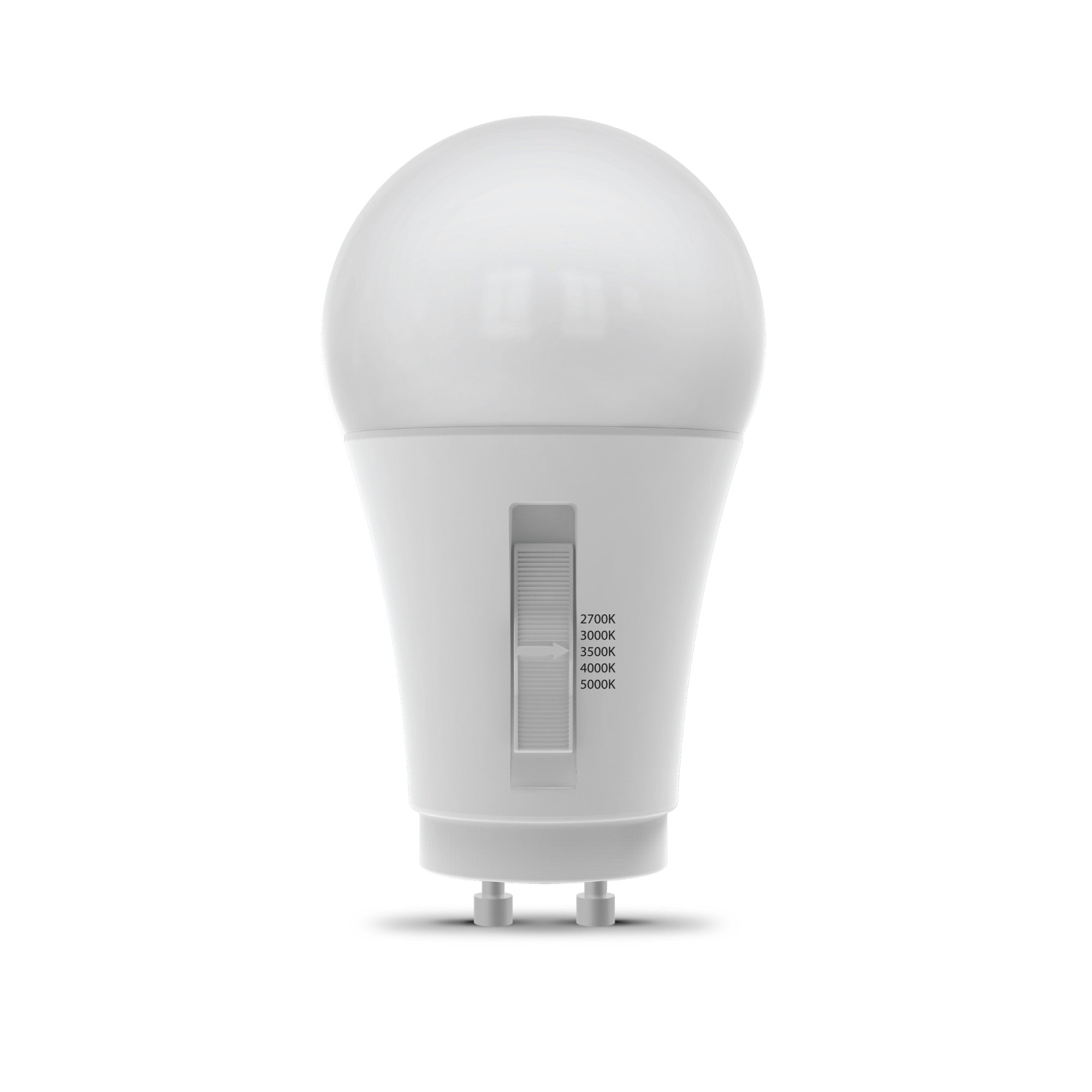 Get the right color light in any space with the Adjustable White 100-watt replacement GU24 Base A19 LED bulb from Feit Electric. Use the toggle on the bulb to select 2700K Soft White, 3000K Bright White, 3500K Neutral White, 4000K Cool White, or 5000K Daylight color temperatures. Set the mood during installation to match your existing lighting. Whether you want to energize your morning, focus on your tasks during the day, or wind down for the night, you can get the right energy-saving LED light in any room. No additional hardware or special apps are required. Selectable LED bulbs are rated to last 25,000 hours, for up to 22.8 years of dependable, even light.
