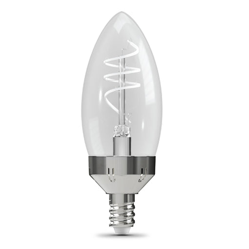 Upgrade your lighting to Feit Electric’s elegant White Filament LED Bulbs for a fresh take on decorative bulbs. These first-of-their-kind white filament bulbs take a traditional torpedo tip bulb encased in clear glass and add lower-profile white filaments. Unlike yellow filaments, these blend into your current décor, for a timeless look that complements any room. Their 2700K Soft White glow is ideal for creating a relaxing and comfortable atmosphere with no harsh glare. Set the perfect mood with high, medium, and low dimming at the flip of a switch. Use these bulbs in any fixture with a Candelabra E12 base socket such as chandeliers, wall sconces, coach lanterns, and more. CTC609273DMCAWFHDRP3 bulbs emit 500 lumens of light while using just 5.5 watts, up to 90.8% less energy than standard 60-watt incandescent bulbs. A 90+ CRI infuses vibrance into your space, bringing out truer colors and more natural skin tones. Get up to 15,000 hours of life with an estimated energy cost of only $0.66 per year. Create a stylish feel that instantly enhances any home or commercial space.