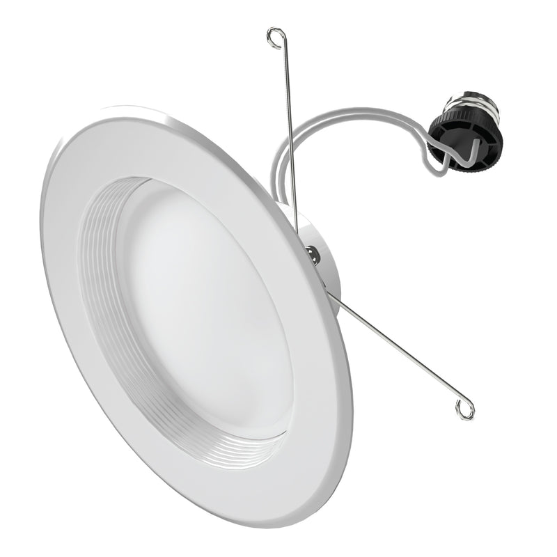 Upgrade your old recessed downlights and save energy with an LED Downlight Retrofit Kit with Baffle Trim from Feit Electric. These dimmable lights fit most 5 or 6-inch recessed cans. They produce up to 925 lumens using only 10.2 watts - up to 87% less energy than a 75-watt equivalent incandescent light. They feature Adjustable White color temperatures. Preset one of 5 white light options on the bulb. Choose soft white (2700K), bright white (3000K), neutral white (3500K), cool white (4000K), and daylight (5000K), or set the light to SWITCH and change color temperatures with the flip of a light switch. With adjustable white light, you can match your current lighting or set the perfect mood for any room and any activity. Customize the mood further with full range dimming when combined with compatible dimmer switches (sold separately). Enhance 90CRI LED light makes colors appear vibrant and skin tones look more natural, all while saving energy and lasting for decades. The Enhance LED Downlight Retrofit Kit is ideal for residential use in kitchens, living rooms, and dining rooms. It also works for commercial use as general lighting in retail and hospitality spaces. Featuring a sleek, white design and baffle trim, this downlight is equipped for use in new construction, remodels, and retrofits to replace your current recessed bulbs. Each Energy Star-qualified kit comes with a standard base adapter and a pre-mounted trim for hassle-free installation.