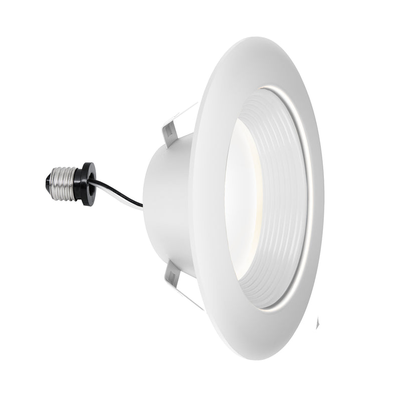 Convert your old recessed downlights to advanced LED energy-saving technology with the LEDR4DB/6WYCA color-selectable 4-inch recessed downlight from Feit Electric. Designed for easy DIY installation, the downlight fits most 4" recessed can housings and comes with a standard base adapter and a pre-mounted trim. A deep baffle design produces extra soft light and reduces glare. Integrated LEDs output 700 lumens using only 7.7 watts - up to 85% less energy than an equivalent 50-watt incandescent. Preset your preferred color temperature on the fixture or adjust after install with a toggle of a standard wall switch: get warm, cool or daylight color light with just a flip. A 90+ CRI light makes colors vibrant and skin tones look more natural, all while saving energy and lasting for a decade or more.