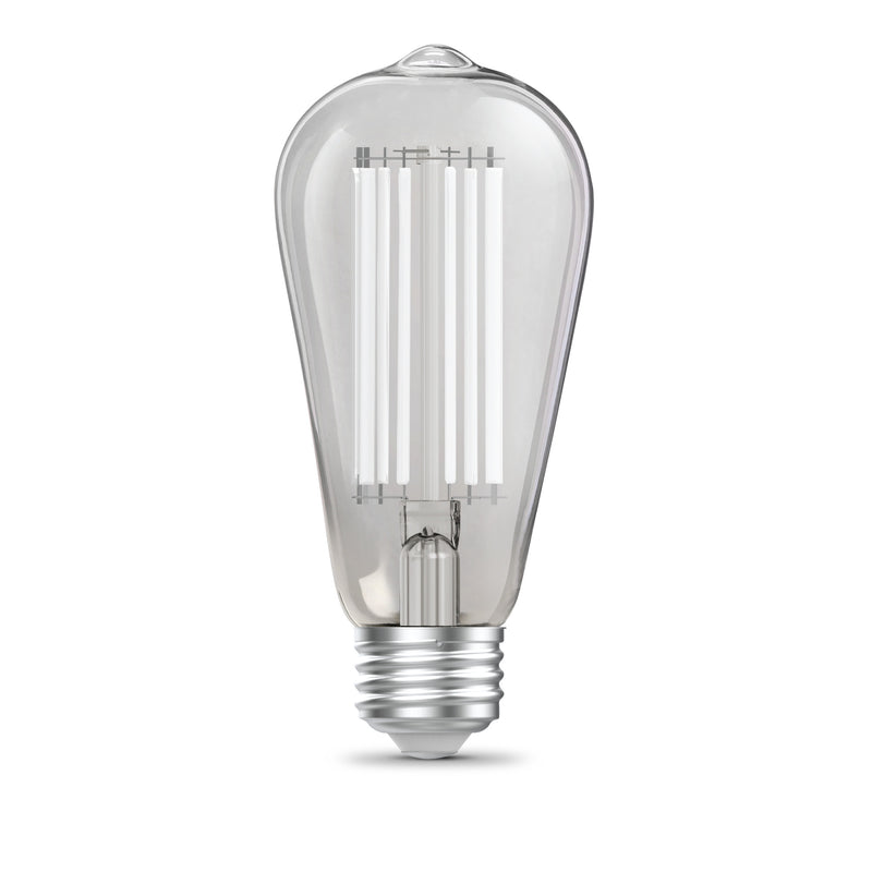 Upgrade your lighting to Feit Electric's elegant Exposed White Filament LED Light Bulbs for a fresh take on decorative bulbs. These first-of-their-kind white filament bulbs take a traditional ST19 bulb with exposed filament encased in clear glass and add lower-profile white filaments. Unlike yellow filaments, these blend into your current décor, for a timeless look that complements any room. They give off a 5000K Daylight White glow ideal for craft rooms, bathrooms, kitchens, laundry rooms, utility rooms, and anywhere you desire invigorating light. Their bluish-white light is perfect for reading, working on intricate projects, and seeing fine details. These bulbs can be utilized with any medium E26 base such as wall sconces, pendant lights, and table lamps. The ST1960950CAWFIL/HDRP emits 800 lumens while only using 8.8 watts of electricity, up to 85.3% less energy than equivalent 60-watt incandescent bulbs. A 90+ CRI infuses vibrance into your space, bringing out truer colors and more natural skin tones. Get up to 15,000 hours of life with an estimated energy cost of $1.06 per year. Create a stylish feel that instantly enhances any home or commercial space.