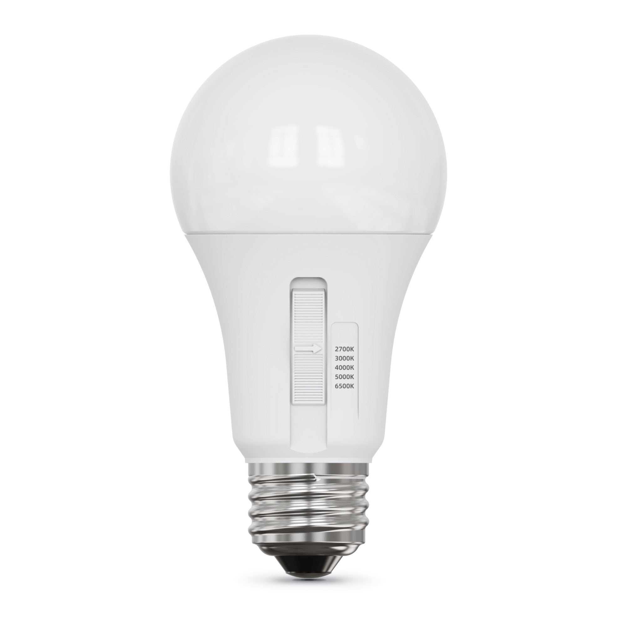 Enjoy all the benefits of advanced LED energy-saving technology with Feit Electric A19 60-watt equivalent selectable color LED light bulbs. LED bulbs feature high color rendering index light with superior light quality and rich vivid color. These selectable color temperature bulbs feature 5 white light options in one bulb, for the perfect light in any room. They produce a similar 800-lumen light output to 60-watt incandescents while using up to 85% less electricity. Each bulb is omnidirectional for all-around light distribution and is rated to last an average of 15,000 hours/13.7 years. Choose a versatile color-selectable LED bulb for general-purpose residential or commercial applications.