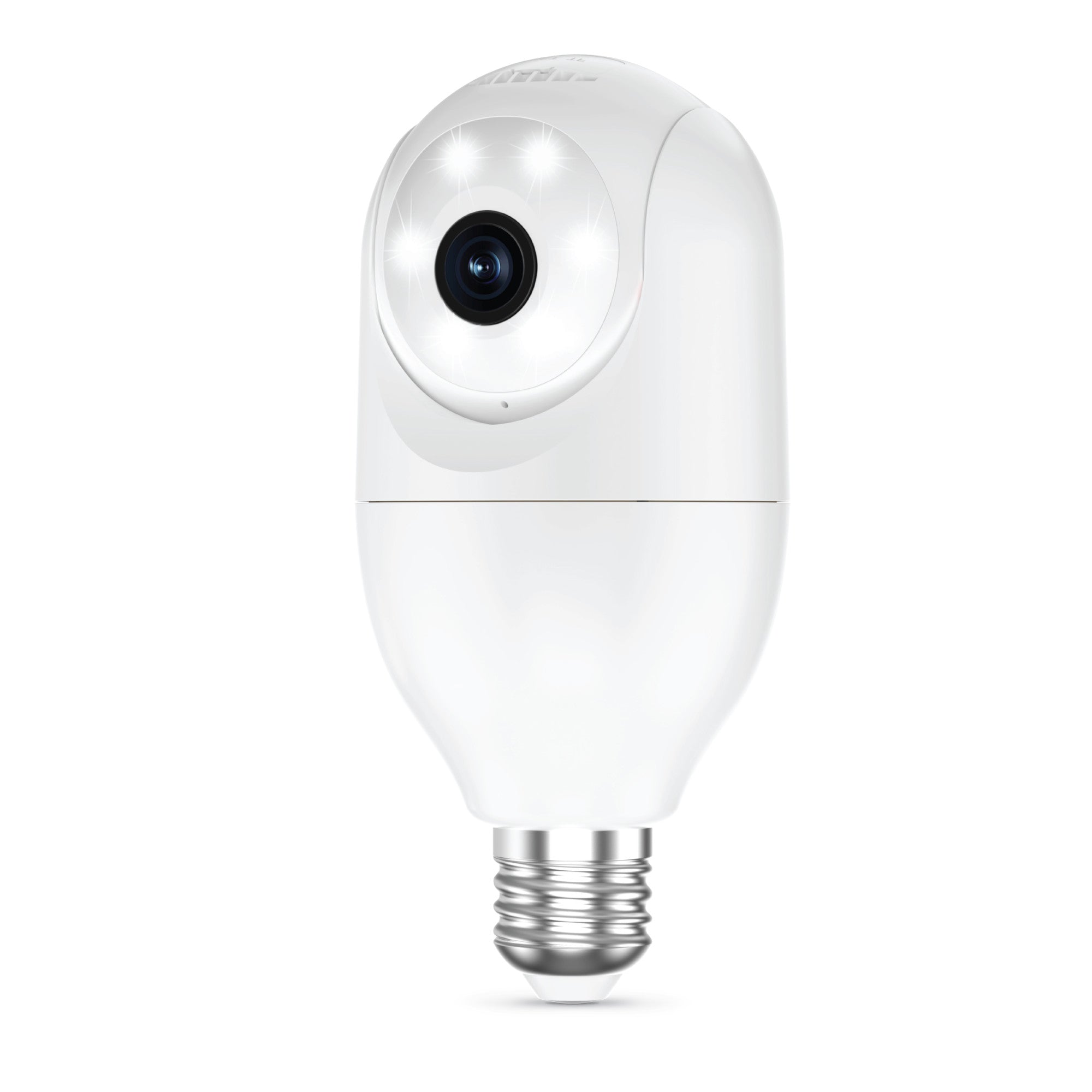 Upgrade your home security with this bulb-based Camera from Feit Electric. This stylish camera offers superior quality 2K QHD resolution, 4 times sharper than standard 1080p cameras, for crystal-clear images. See, hear, and speak with visitors from anywhere with 2-way audio and receive mobile alerts when motion is detected. The intelligent human tracking feature ensures you only get important notifications, while the automatic motion tracking follows activity for a complete picture. With a 100-degree viewing angle, 350-degree panning ability, and multiple night vision modes, this camera provides comprehensive coverage, day or night. Store footage locally on a micro SD card (up to 128GB, not included) for peace of mind even if your Wi-Fi goes down. Plus, easy plug-and-play setup and seamless integration with Alexa or Google Assistant make this camera a user-friendly security solution for your smart home. All you need to get started is a medium-base E26 socket, the free Feit Electric app, and a 2.4GHz Wi-Fi network.