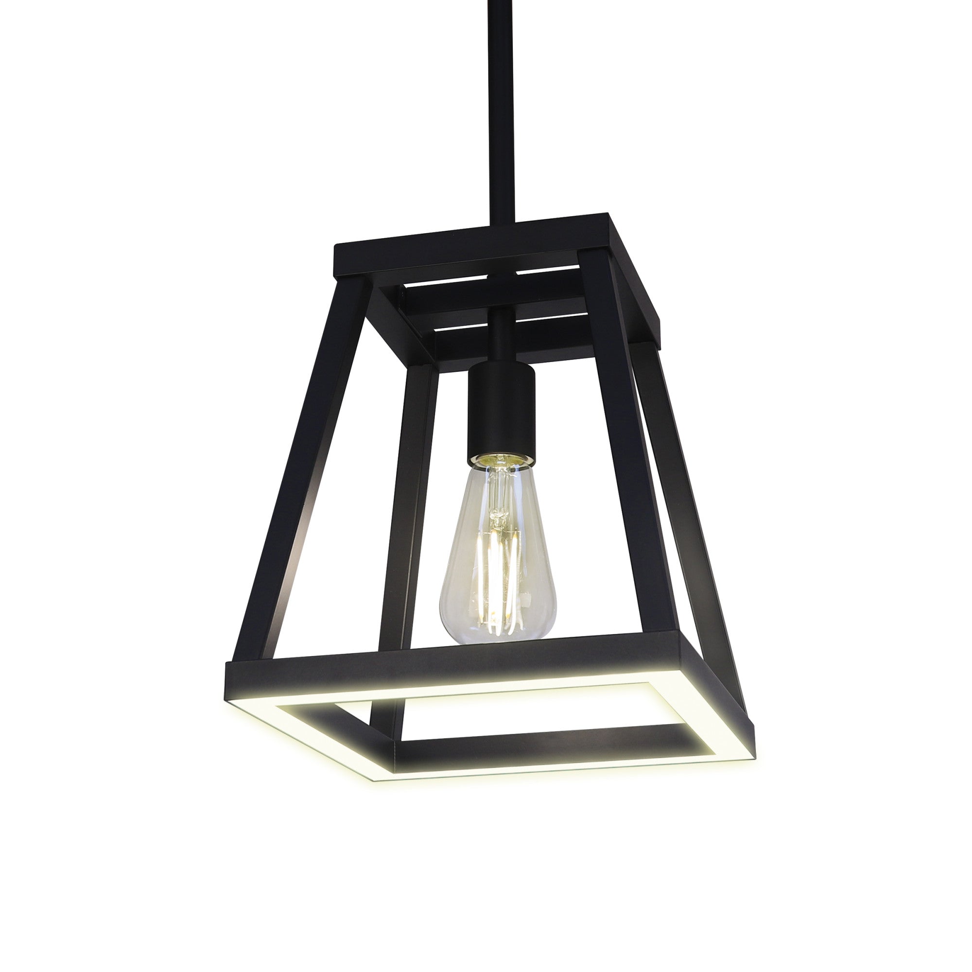 A versatile light fixture with three light modes, perfect for multi-use rooms and accommodating various activities in the same room throughout the day. The Feit Electric Katalyst Collection LED Decorative Single Light Pendant transforms the mood of shared-use spaces whenever you need it. Combining a traditional aesthetic with modern energy-saving LED technology, the sleek lines, and matte black finish perfectly complements contemporary or traditional home decor styles. Add your favorite separately sold Medium E26 base light bulbs and let the fixture do the rest. Choose from three light mode options depending on the activity. Entertain guests by switching ON the bulbs using area light mode. The area light illuminates your space with a single bulb up to 60 watts. Get work done by lighting both the area light and the downlight. You can even tailor the mood of the downlight by adjusting between Soft White (2700K), Bright White (3000K), Neutral White (3500K), Cool White (4000K), or Daylight (5000K). Wind down the day by turning ON the night up-light and switching to 40 lumens of soothing warm white light that makes the room cozier. Further customize your lighting by dimming the area light and area light with downlight using an existing dimmer. Say hello to the optimal light for work, play, relaxing, or entertaining with the Katalyst Collection LED light fixture. The perfect transformative lighting fixture for modern households.